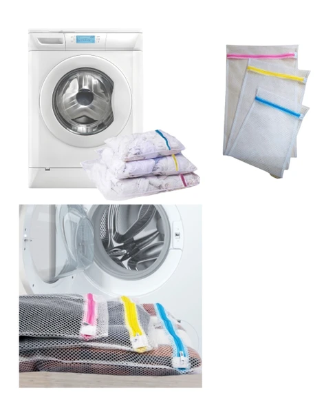 3'lü Çamaşır Yıkama Filesi Set Renkli Fermuarlı Pratik Çamaşır Yıkama Filesi Seti 3 Boy