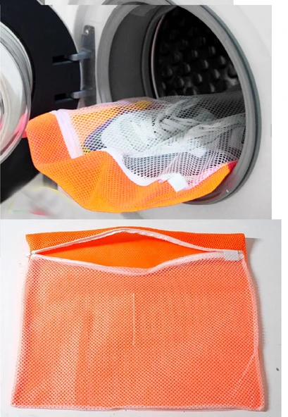 Turuncu - Fermuarlı - Hassas Çamaşır Terlik Ayakkabı Yıkama Filesi Büyük Boy