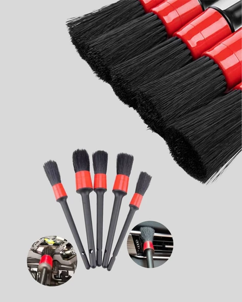 5 Boy Fırçalı Araba Temizlik Seti-Derin Temizlik Sağlayan Yumuşak Fırçalar