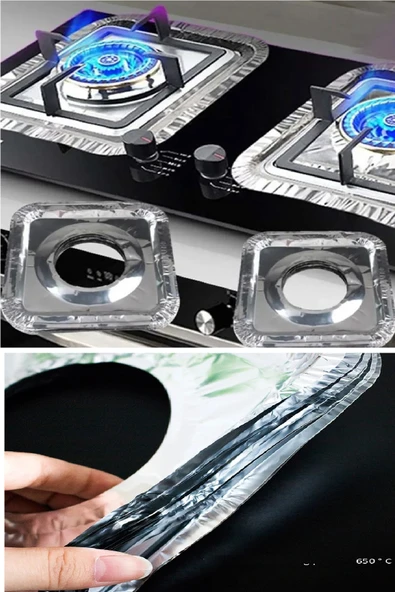 20 Adet Ocak Üstü Koruyucu Leke Önleyici Isıya Dayanıklı Yıkanabilir Ocak Gözü Izgara Koruyucu Folyo
