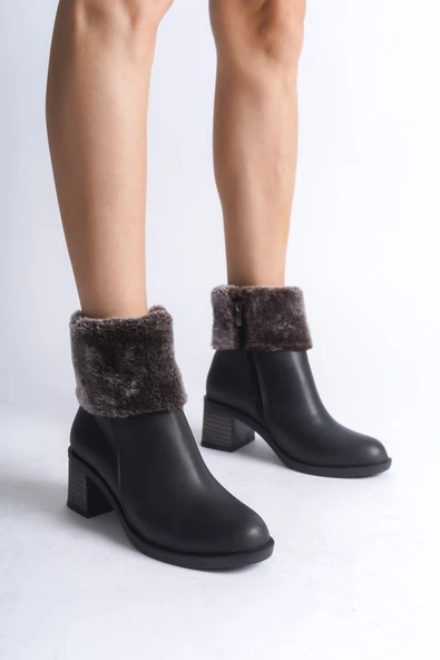 JULIA Fermuarlı Ortopedik Taban Tüylü Topuklu Kadın Bot CST - Siyah