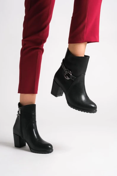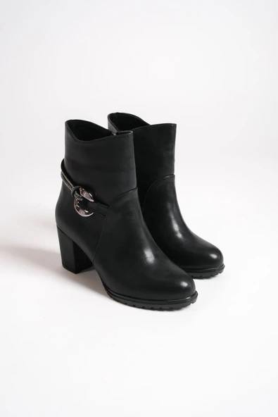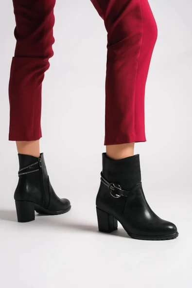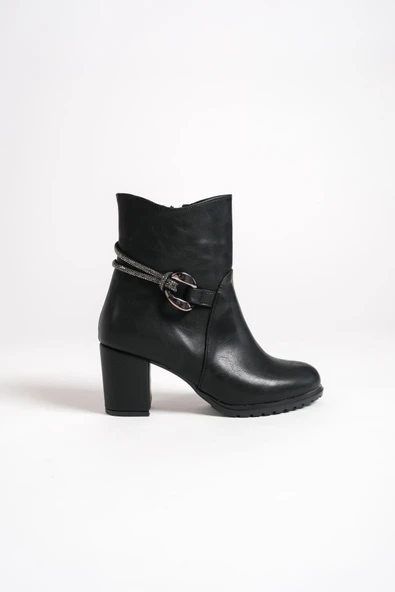 EDNA Fermuarlı Ortopedik Taban Taşlı Topuklu Kadın Bot CST - Siyah