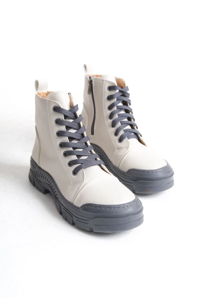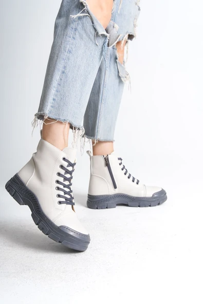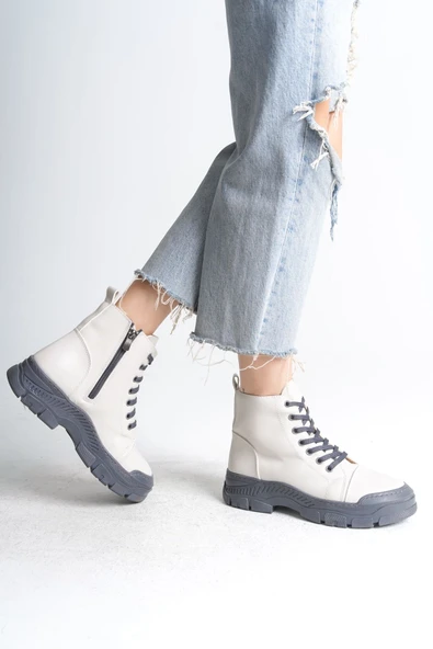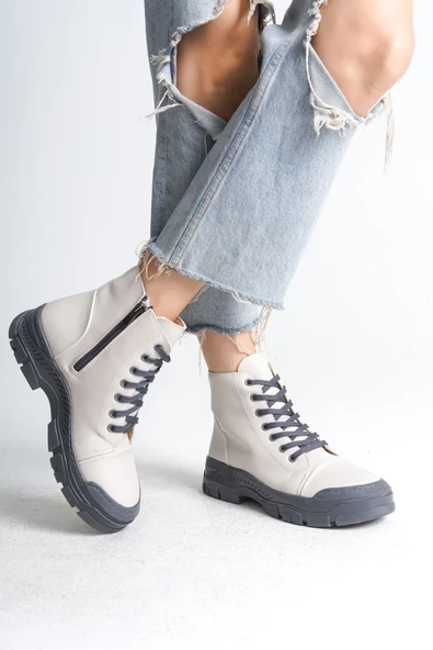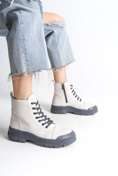 GINA Bağcıklı Fermuarlı Ortopedik Taban Çantalı Kadın Bot CKT - Krem