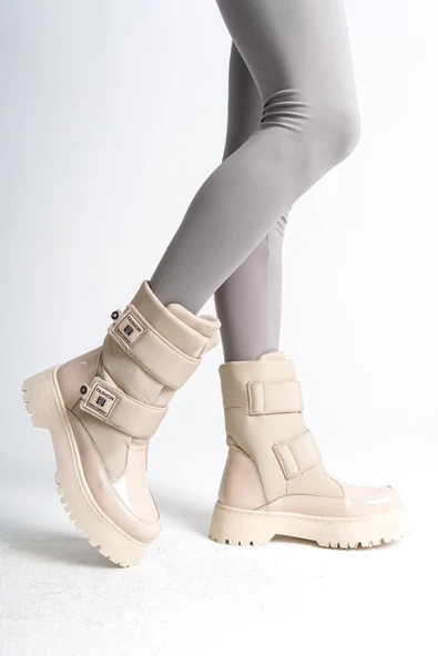 LUCY Lastikli Fermuarlı Paraşüt Kumaş Rugan Kadın Bot CKT - Krem