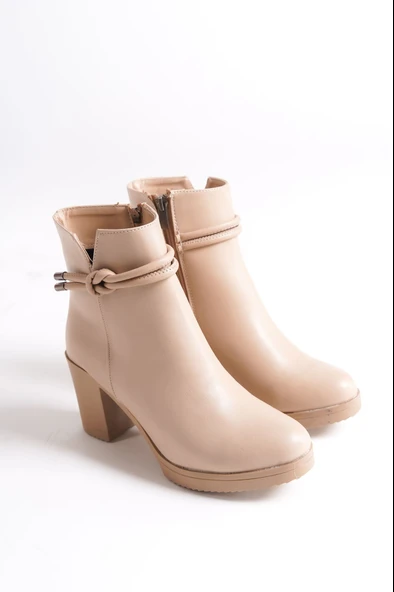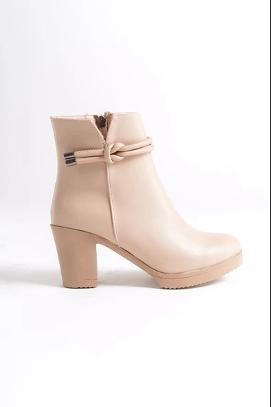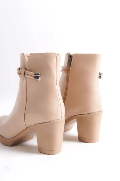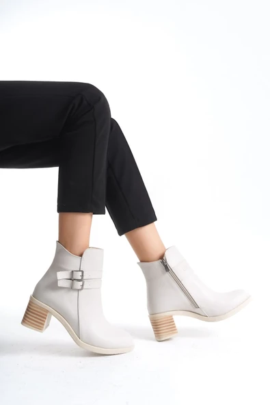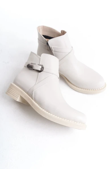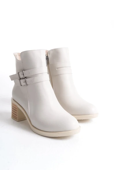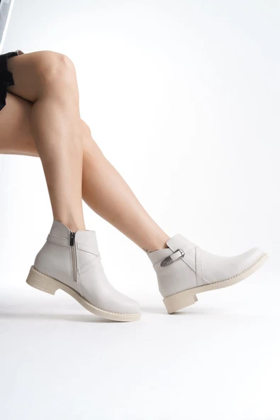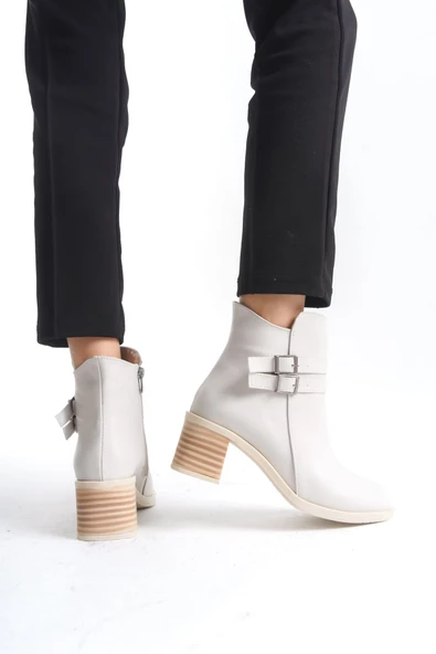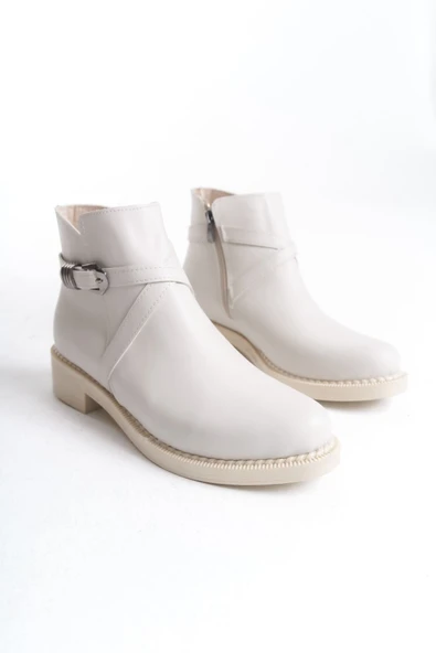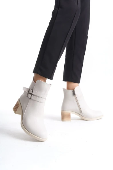 NOEMI Tokalı Fermuarlı Ortopedik Taban Topuklu Kadın Bot CKT - Krem