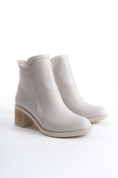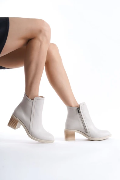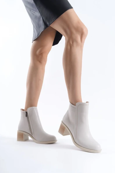 MARGARET Fermuarlı Ortopedik Taban Topuklu Kadın Bot CKT - Krem