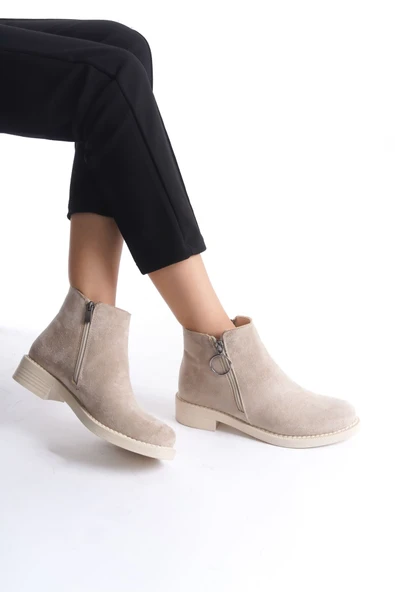 MARGARET Fermuarlı Ortopedik Taban Topuklu Süet Kadın Bot STT - Ten