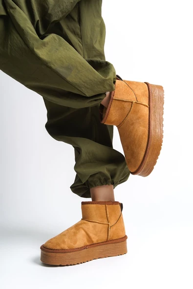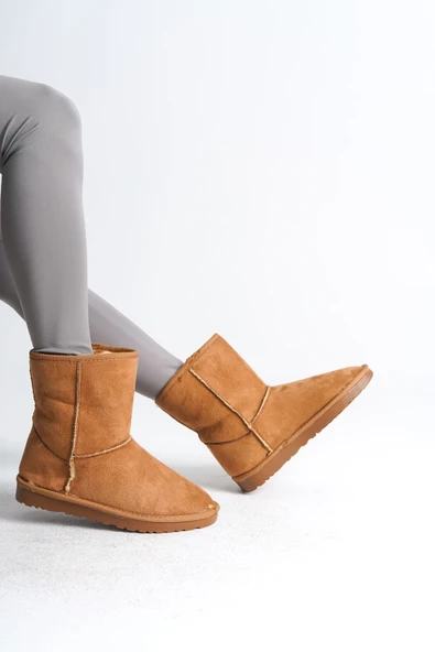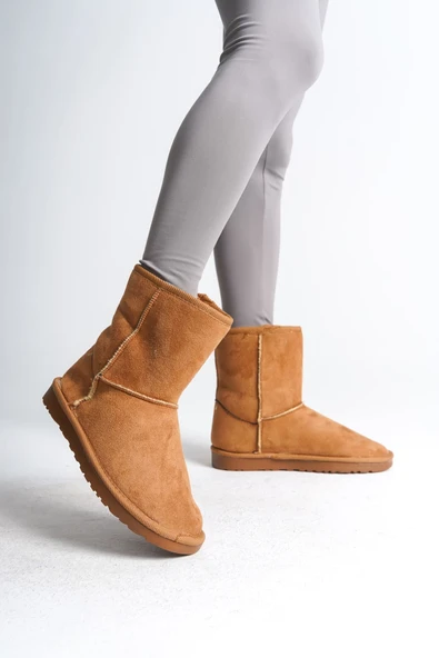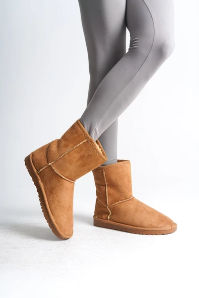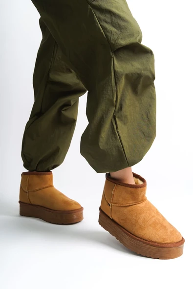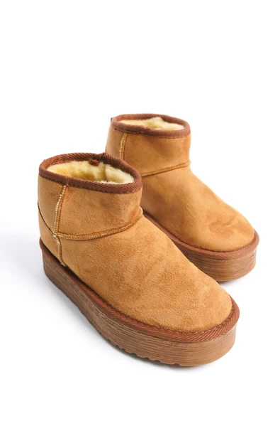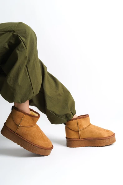 JOLIE Bağcıksız Düz Taban İçi Kürklü Kısa Süet Kadın Bot STT - Taba