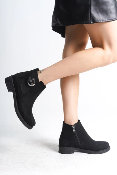 LARISSA Fermuarlı Ortopedik Taban Topuklu Süet Kadın Bot SST - Siyah