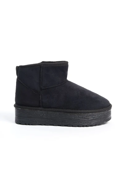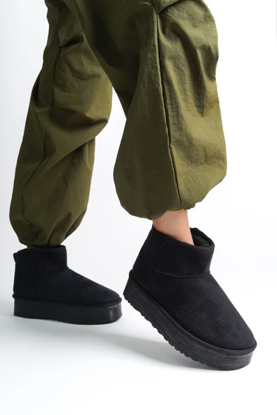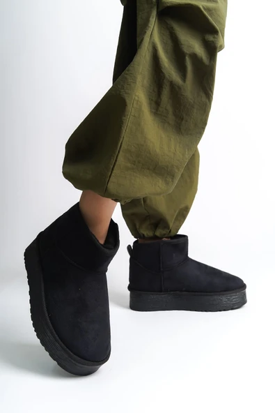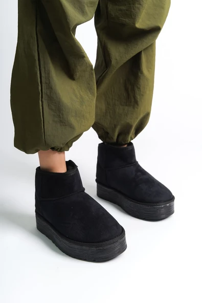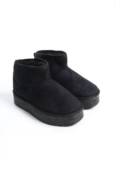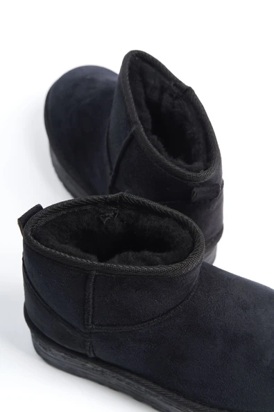 AMELIA Bağcıksız Düz ve Kalın Taban İçi Kürklü Kısa Süet Kadın Bot SST - Siyah