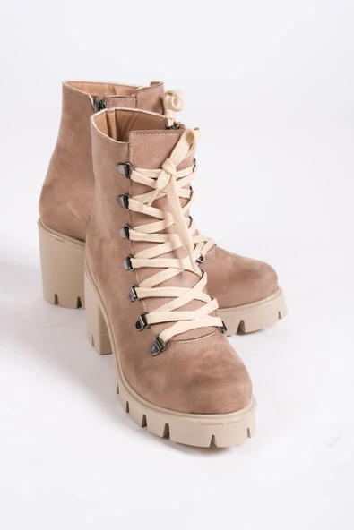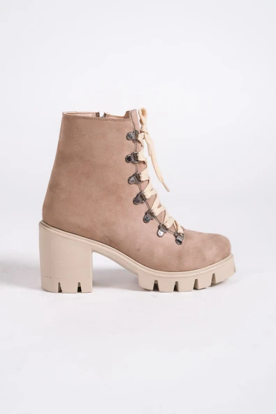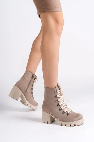 EMMA Bağcıklı Fermuarlı Ortopedik Taban Topuklu Süet Kadın Bot STT - Ten