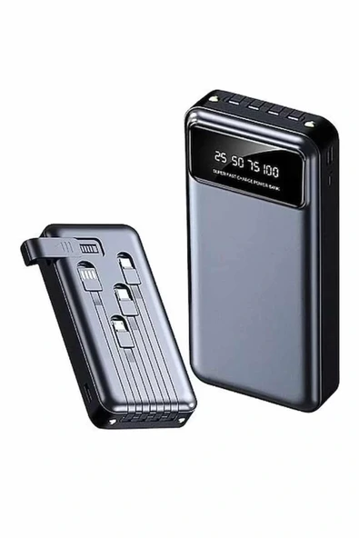 20000 mAh Powerbank | Çok Kablolu, Dijital Göstergeli, Yüksek Hızlı Şarj Cihazı