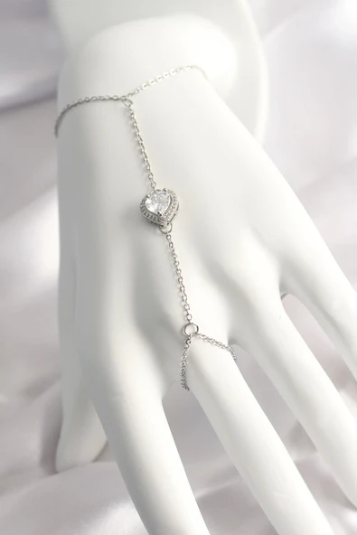 Pirinç Gümüş Renk Zirkon Taşlı V Model Kadın Şahmeran