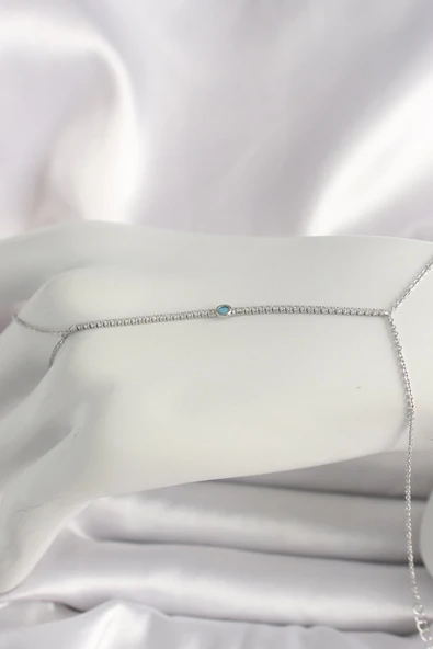 Pirinç Gümüş Renk Su Yolu Zirkon Taşlı Mavi Taş Detaylı Kadın Şahmeran