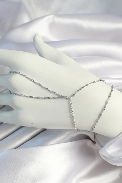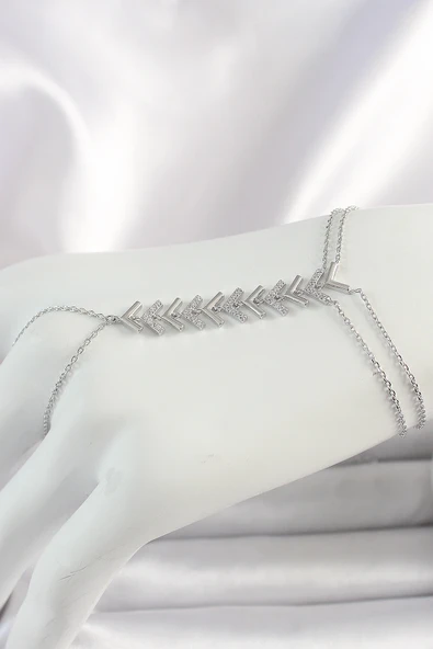 Pirinç Gümüş Renk Su Yolu Zirkon Taşlı İşlemeli Yonca Model Kadın Şahmeran