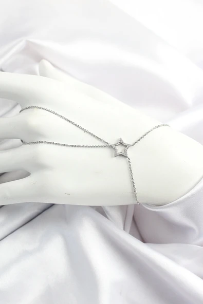 Pirinç Gümüş Renk Su Yolu Zirkon Taşlı Yıldız Model Kadın Şahmeran