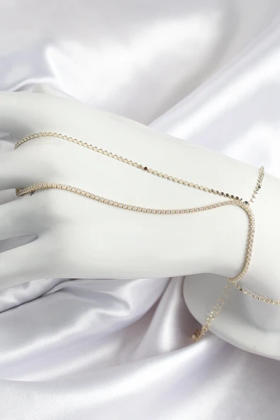 Pirinç Zirkon Taşlı Ezme Zincir Model Gold Renk Kadın Şahmeran