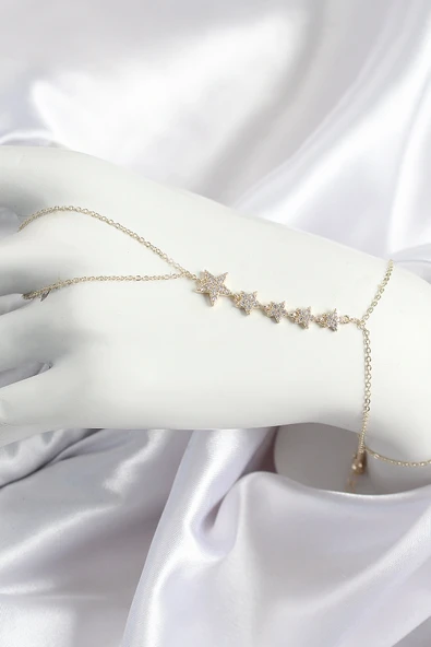 Pirinç Gold Renk Zirkon Taşl Yıldız Model Kadın Şahmeran
