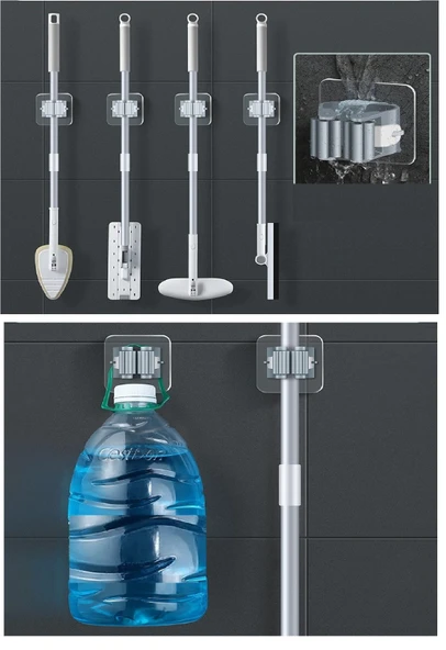 3 Lü Renkli Yapışkanlı Mop Fırça Çek pas Sap Tutucu Organizer Mutfak Banyo Düzenleyici