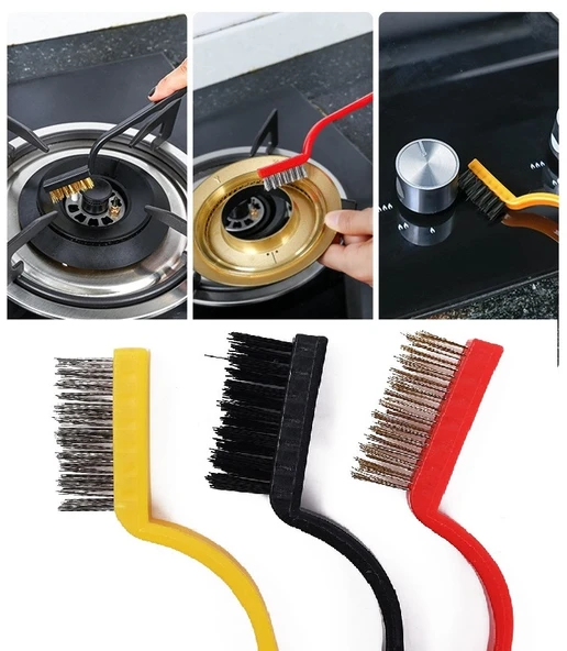 3 Lü Detay Temizlik Fırça Seti Araba -Mutfak Ocak - Fayans Temizlik Fırça (Bakır- Demir- Plastik)
