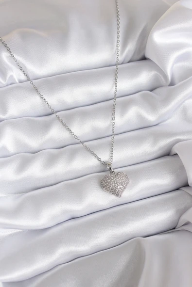 316L Çelik Zincir Gümüş Renk Zirkon Taşlı Kalp Model Kadın Kolye