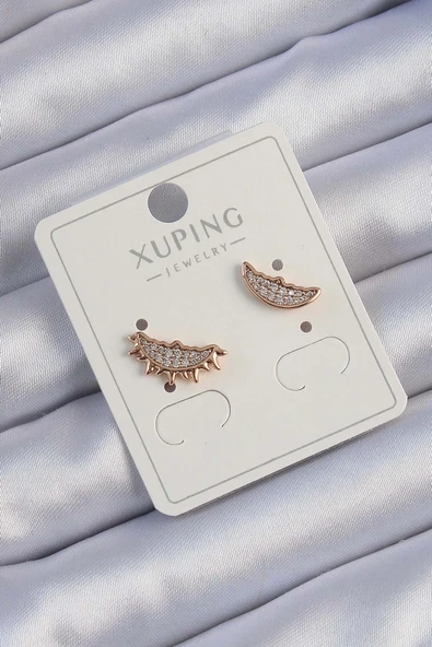 Xuping Rose Renk Zirkon Taşlı Ay ve Güneş Tasarımlı Küpe