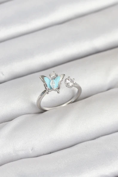 Pirinç Gümüş Renk Kelebek Model Kadın Yüzük