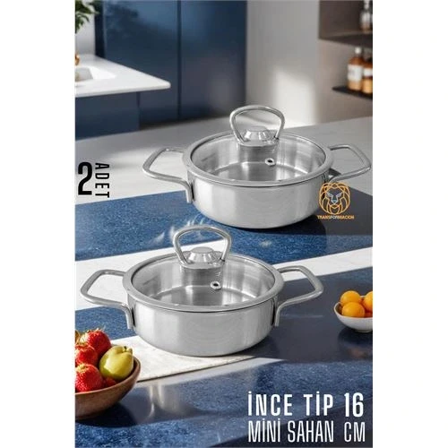 Mini Kapaklı Sahan Tencere 2 ADET Çelik 16 cm