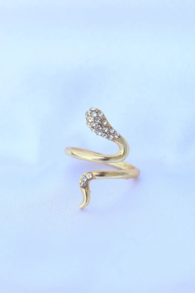 Pirinç Gold Renk Ayarlanabilir Zirkon Taşlı Yılan Yüzük