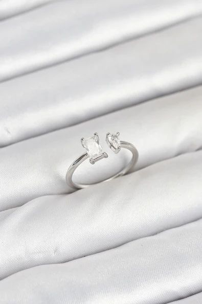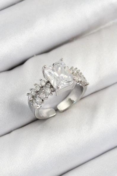 Zirkon Taşlı Silver Renk Ayarlanabilir Yüzük