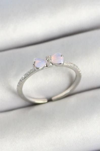 Pirinç Gümüş Renk Ayarlanabilir Zirkon Taşlı Beyaz Mineli Model Kadın Yüzük
