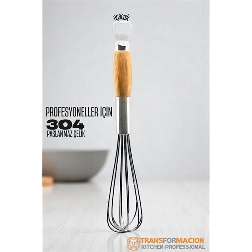 Ahşap Saplı Açacaklı Çırpıcı 304 Paslanmaz Çelik Yumurta ve Sos Çırpıcı Çırpma Teli