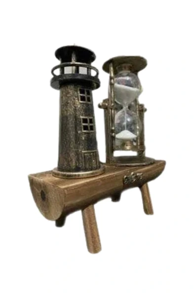 Hediyelik Eşya Retro Deniz Fenerli Kum Saati Ahşap Görünümlü Dekoratif Eşya