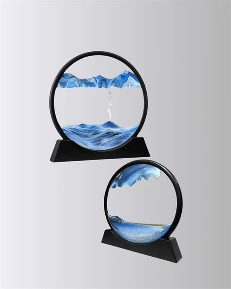7 Inç Mavi Orta Boy Dekoratif Yuvarlak Şık Kum Tablosu Modern Dekoratif Süs
