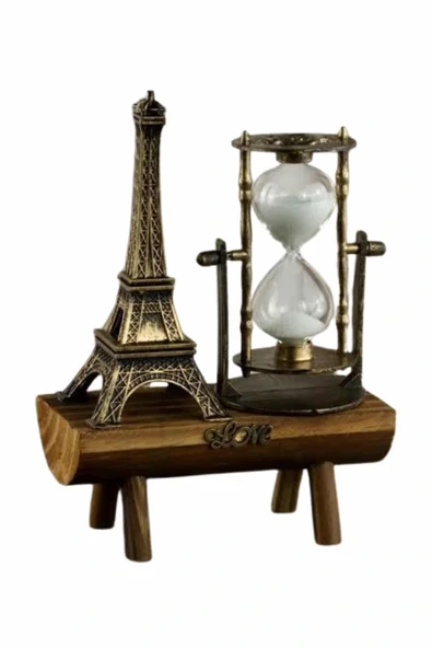 Eyfel Kulesi Tasarımlı Kum Saati Kristalleştirilmiş Kum Saati Dekoratif Ahşap Görünümlü