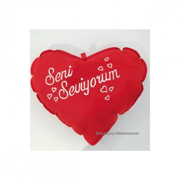 Hediyelik Seni Seviyorum Yazılı Kalp Baskılı Yastık Orta Boy 37 cm