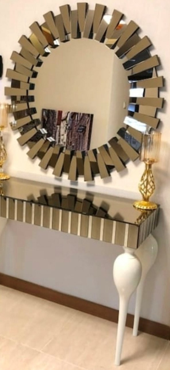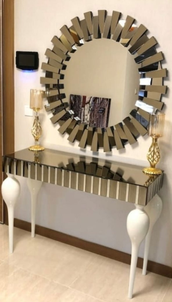 Dresuar ST 18113 GÜNEŞ Model Parlak bronz cam ayna kaplı Kayın tombul ayak beyaz
