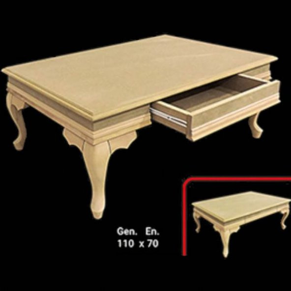 Orta sehpa 13558 Model Çekmeceli Pervaz Kayın Aslan ayak Masif HAM MDF tabla