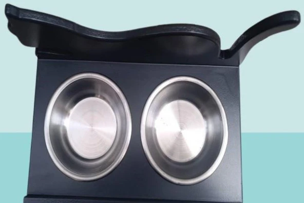 Hobi ERC MODEL 90375 Küçük Kedi Mama Su Kabı MDF Antrasit Renk Paslanmaz Tabak