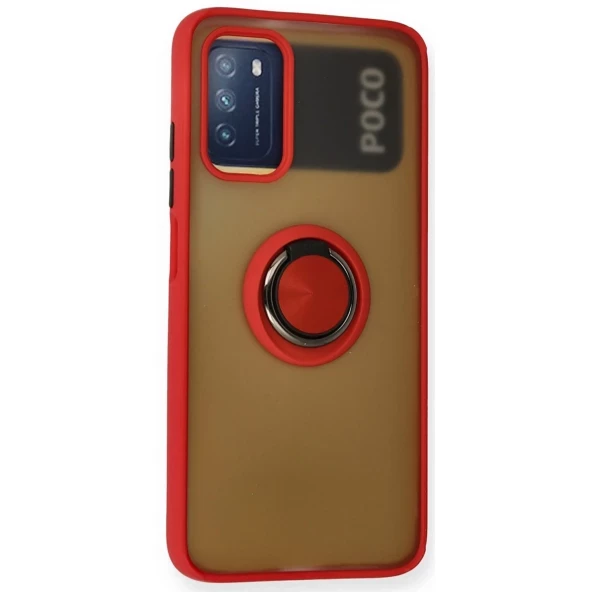 Poco M3 Kılıf Yüzüklü Silikon Kapak - Kırmızı