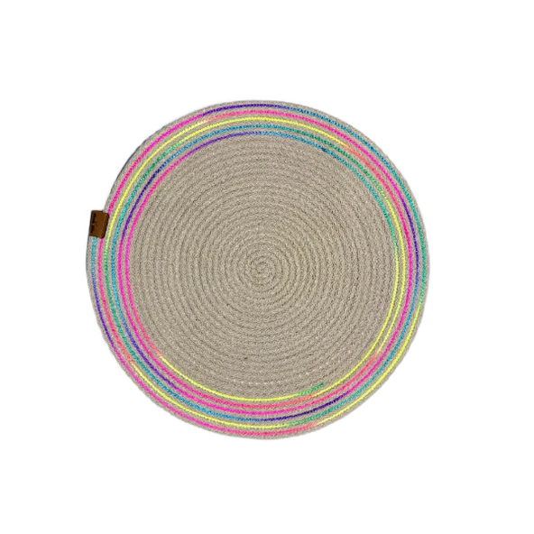 DecoHandy 39cm Neon Renkli Şeritli Jüt Örme Supla Amerikan Servis