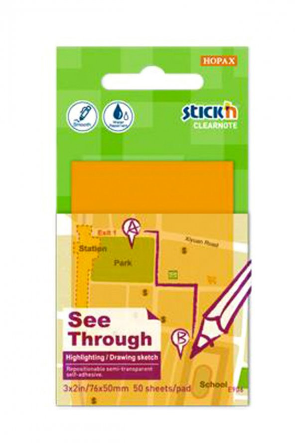 Hopax Stickn 21706 Yapışkanlı Not Kağıdı Yarı Saydam 50 Yaprak 76X51 Mm Neon Turuncu