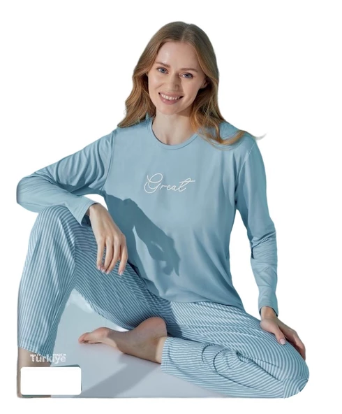 Kadın Viskon Mevsimlik Uzun Kol Cepli Pijama Takımı-Üstü İnce Triko Alt Pijama Dar Kesim Jakar Kumaş1.999,99 TL