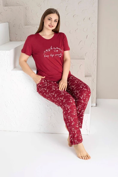 Kadın Desenli Bisiklet Yaka 3 Düğmeli Yırtmaç Detaylı Büyük Beden Viskon Kısa Kol Pijama Takımı1.159,99 TL