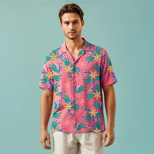 Anemoss Mercan Desenli %100 Viskon Yumuşak Nefes Alabilir Kumaşlı Erkek Gömlek