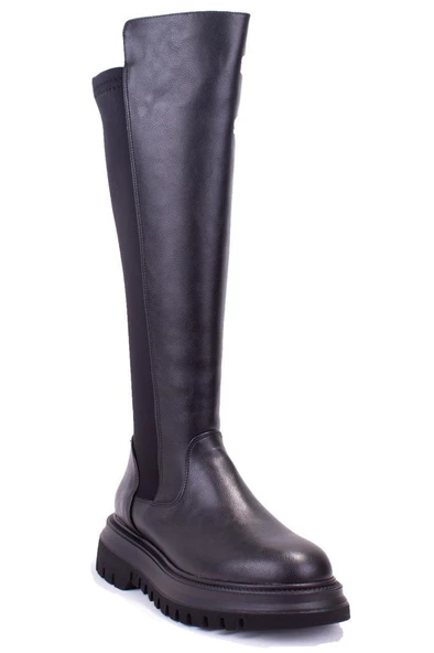 Dagoster DZA07-12531043 Siyah Günlük Streçli Düz Topuk Kadın Çizme