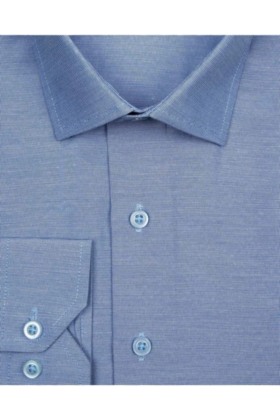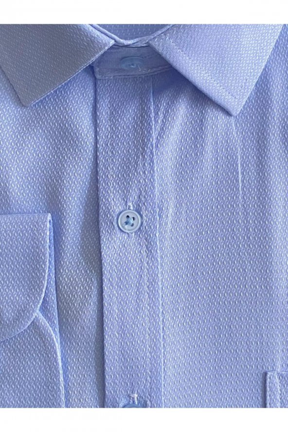 Bol Kesim Armür Desenli Mavi Erkek Gömlek