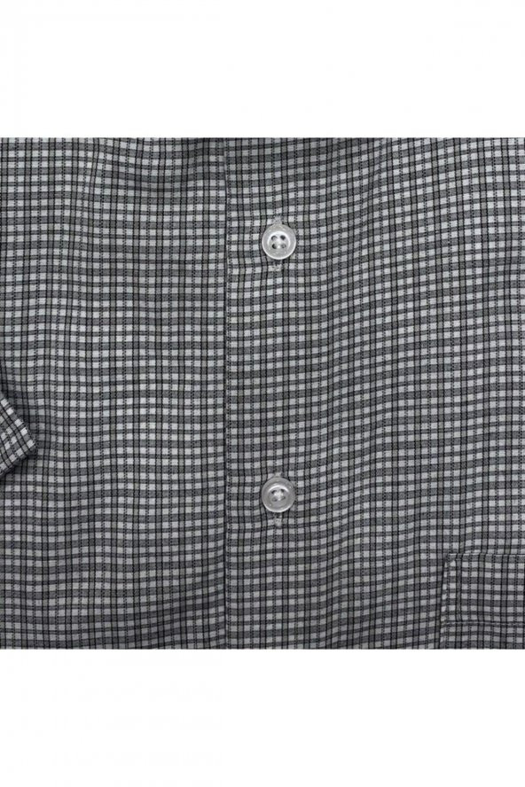 Bol Kesim Desenli Kısa Kollu Gri Gömlek