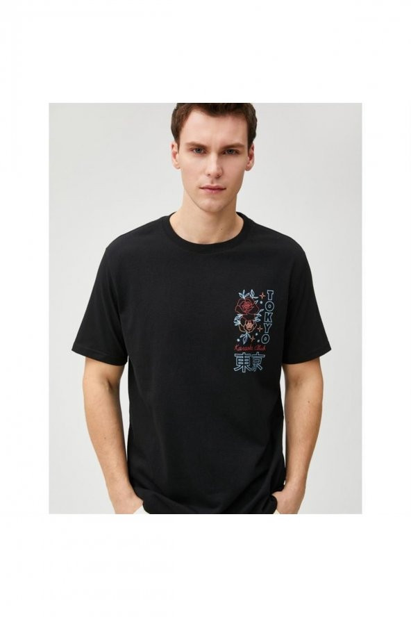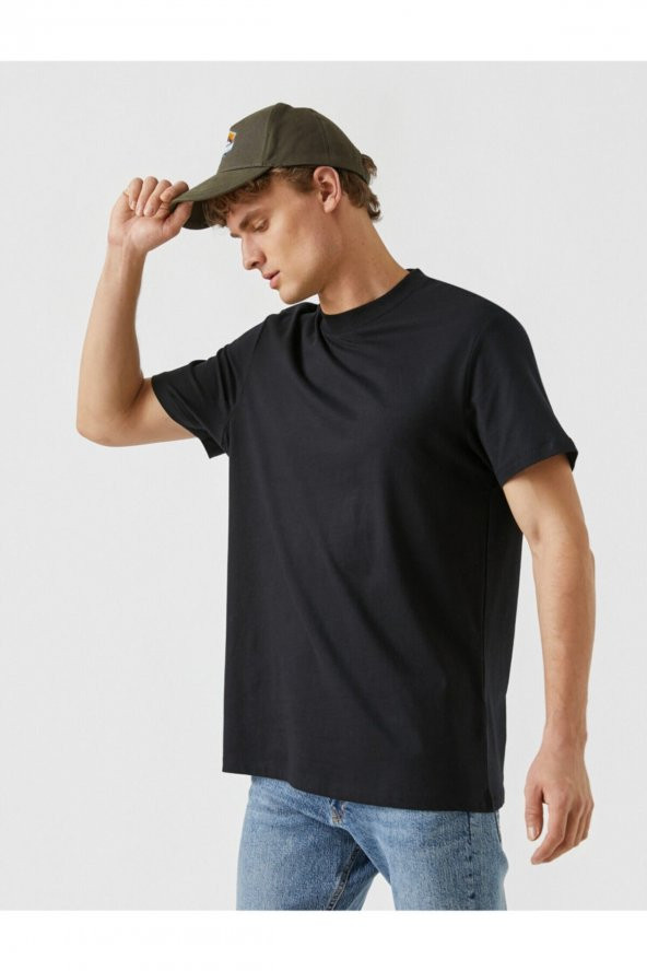 3sam10047hk 999 Siyah Erkek Pamuk Jersey Kısa Kollu O Yaka T-shirt