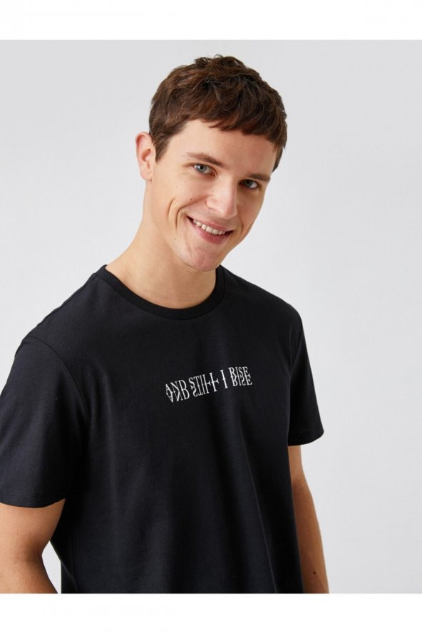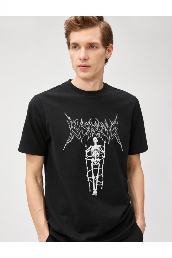 Kuru Kafa Baskılı Tişört Bisiklet Yaka Kısa Kollu